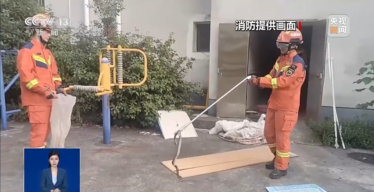 经确认,这是一条长约1.5米的菜花蛇。随后,消防员将其装入专用容器,转运至野外安全区域放归。