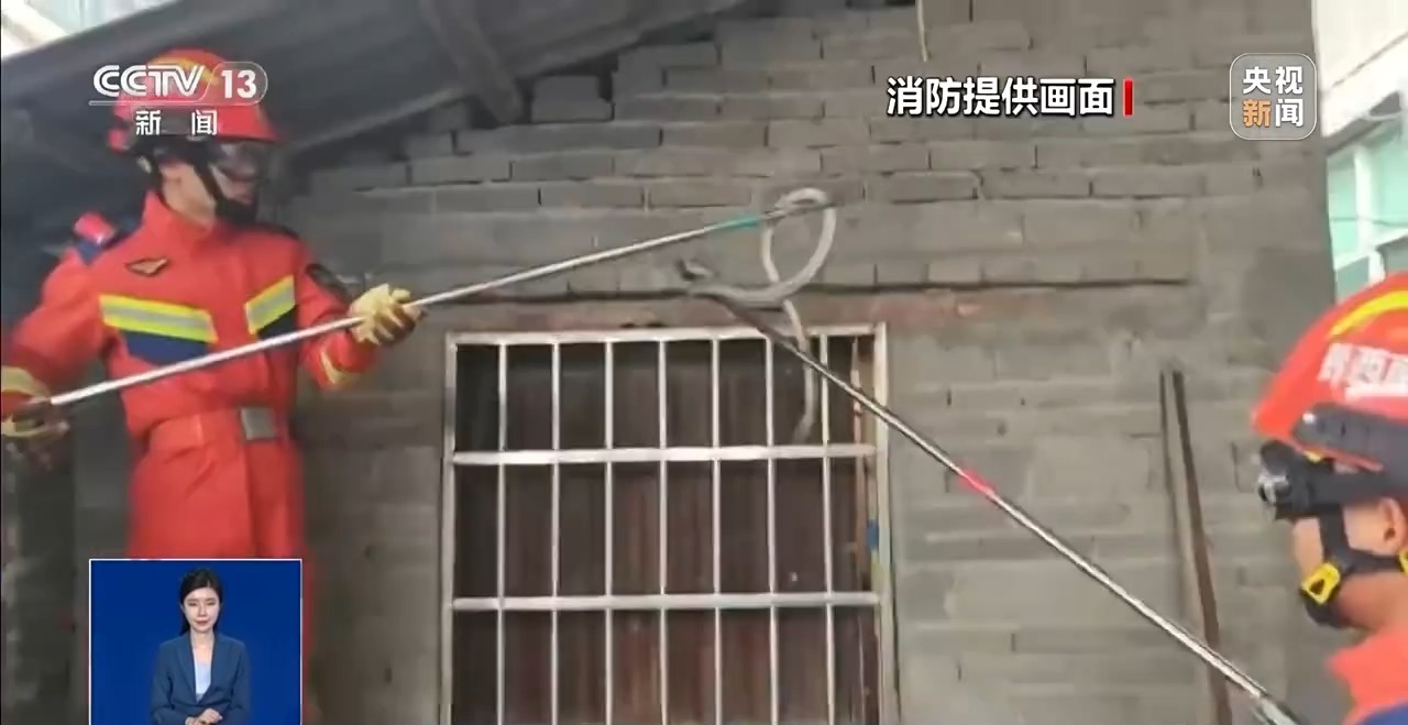 无独有偶,2日,贵州黔西南州消防救援支队也接到居民报警,称家中房梁砖洞内盘踞着一条蛇。 消防员抵达现场观察发现,蛇盘踞的房顶砖洞,洞口狭小,不利于操作。消防员先通过工具吸引蛇的注意,待蛇探出洞口时,果断用捕蛇夹夹住蛇头,另一名消防员紧随其后,稳稳夹住蛇身,两人合力将蛇拉出砖洞。