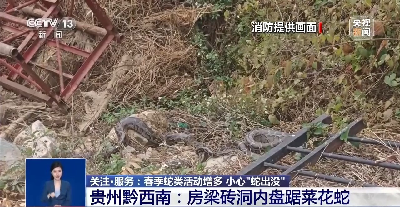 消防部门提醒,春季蛇类开始活跃,市民外出时如果遇到蛇,切勿近距离停留、挑逗。若蛇不慎进入家中、商铺等场所,切勿自行捕捉,应及时报警,等待专业人员处置。
