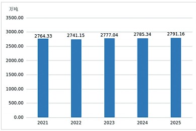 2021—2025年全省粮食产量