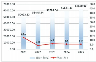 初步核算,2025年全省生产总值为62660.90亿元,按可比价格计算,比上年增长5.5%。其中,第一产业增加值5380.66亿元,增长3.5%;第二产业增加值21865.90亿元,增长5.1%;第三产业增加值35414.34亿元,增长6.0%。三次产业结构由2024年的9.1∶35.7∶55.2调整为8.6∶34.9∶56.5。人均地区生产总值为107619元,按可比价格计算,比上年增长5.7%。