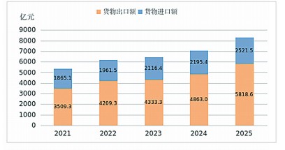 2021—2025年全省货物进出口总额
