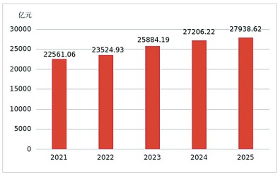 2021—2025年湖北省社会消费品零售总额