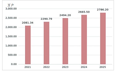 2021—2025年全省年末固定互联网宽带接入用户数