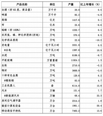 全年油料产量416.70万吨,比上年增长2.5%;茶叶产量49.78万吨,增长5.0%;园林水果产量887.62万吨,增长4.6%;蔬菜及食用菌产量4787.43万吨,增长3.5%。