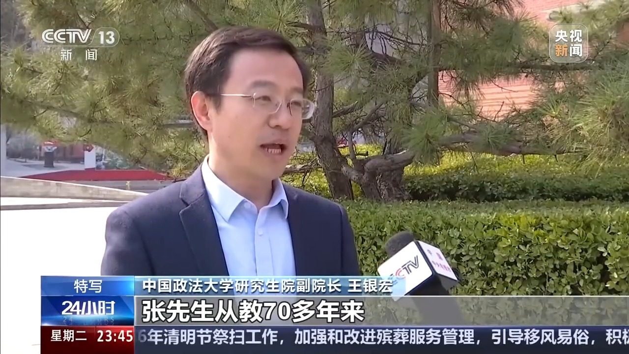 中国政法大学副校长 于飞:96岁当了人民教育家,但是他仍然把自己当成普通人,这一点会对他的年轻后辈,对他的学生有极大的感染,而这个感染是影响人一辈子的,不止那一点知识的传授。