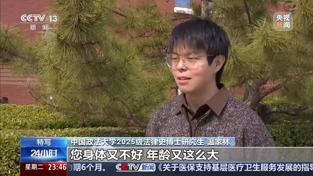 中国政法大学2025级法律史博士研究生 温家林:我们劝他说,工作已经这么劳累了,您身体又不好,年龄这么大,工作上的事儿可以放松一下。他当时就跟我们说,你们学生都在努力,我这个做老师的也不能够自甘躺平,正是这样对学术严谨和认真的态度以及高度负责的精神激励着我们青年学子不断在法律史学界探索。