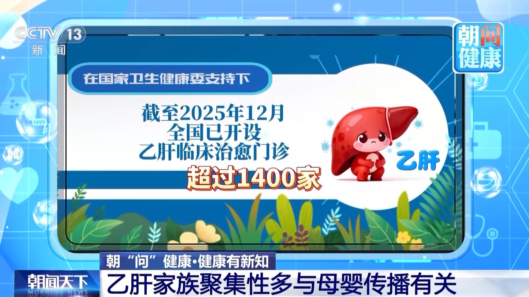 在国家卫生健康委支持下,截至2025年12月,全国已开设乙肝临床治愈门诊超过1400家。我国目前约有7500万乙肝病毒感染者,但真正发现的感染者不足2000万,而且肝脏内部没有痛觉神经,即使出现病变也往往没有任何症状。因此专家呼吁,30岁以上的成年人至少要进行一次乙肝筛查。