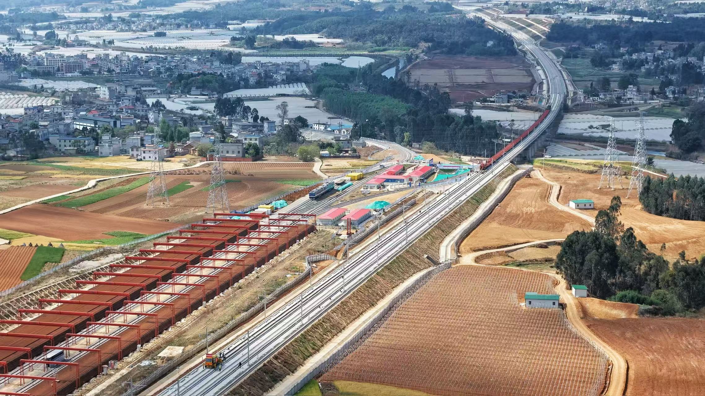 渝昆高铁是我国“八纵八横”高铁网京昆通道的重要组成部分,全长近700公里,设计时速350公里,其中云南段长388.6公里。线路从重庆西站出发,途经重庆、四川、贵州、云南四省市,终至昆明南站,云南境内新建盐津南、彝良北、昭通东、会泽、田坝、寻甸东、长水机场等7座车站。