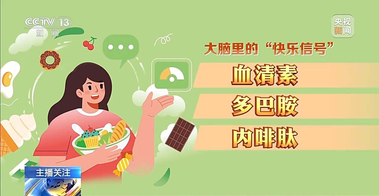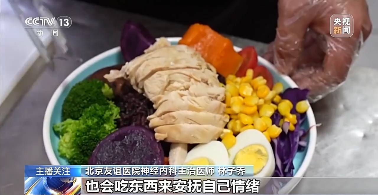 北京友谊医院神经内科主治医师 林子乔:通过饮食能够让大脑的奖赏系统得到激活,我们能够得到即刻的愉悦感。这种食物的满足感让我们可以获得回到童年时期进食被安抚、被爱抚的这种感受。很多人一吃东西一吃饱,就找到了那种满足感、安全感。所以即便我们到了成年期,也会吃东西来安抚自己的情绪,这就是我们经常说的,食物对于我们情绪的常见帮助和影响。