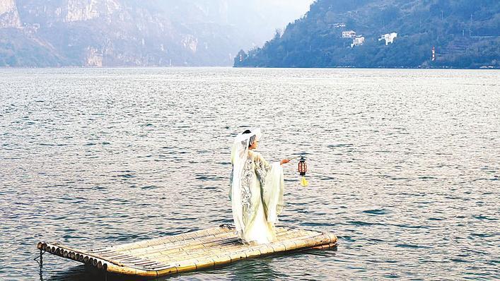 轻舟影咖的江面竹筏吸引众多美女打卡。