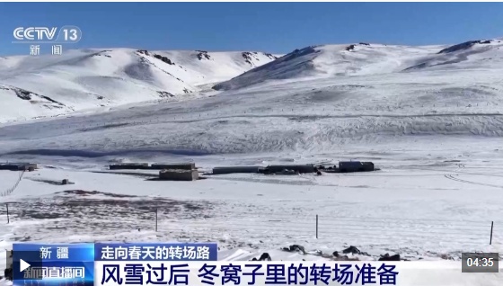 总台记者 高鹏飞:这处冬牧场叫作阔克阔拉冬牧场,意思是蓝色的羊圈,听名字就很有特色,这里是一处山谷,地形很平坦,而且向阳、背风,是很理想的越冬的冬牧场。这两天当地牧民陆续开始转场了。什那尔一家也要踏上转场路。