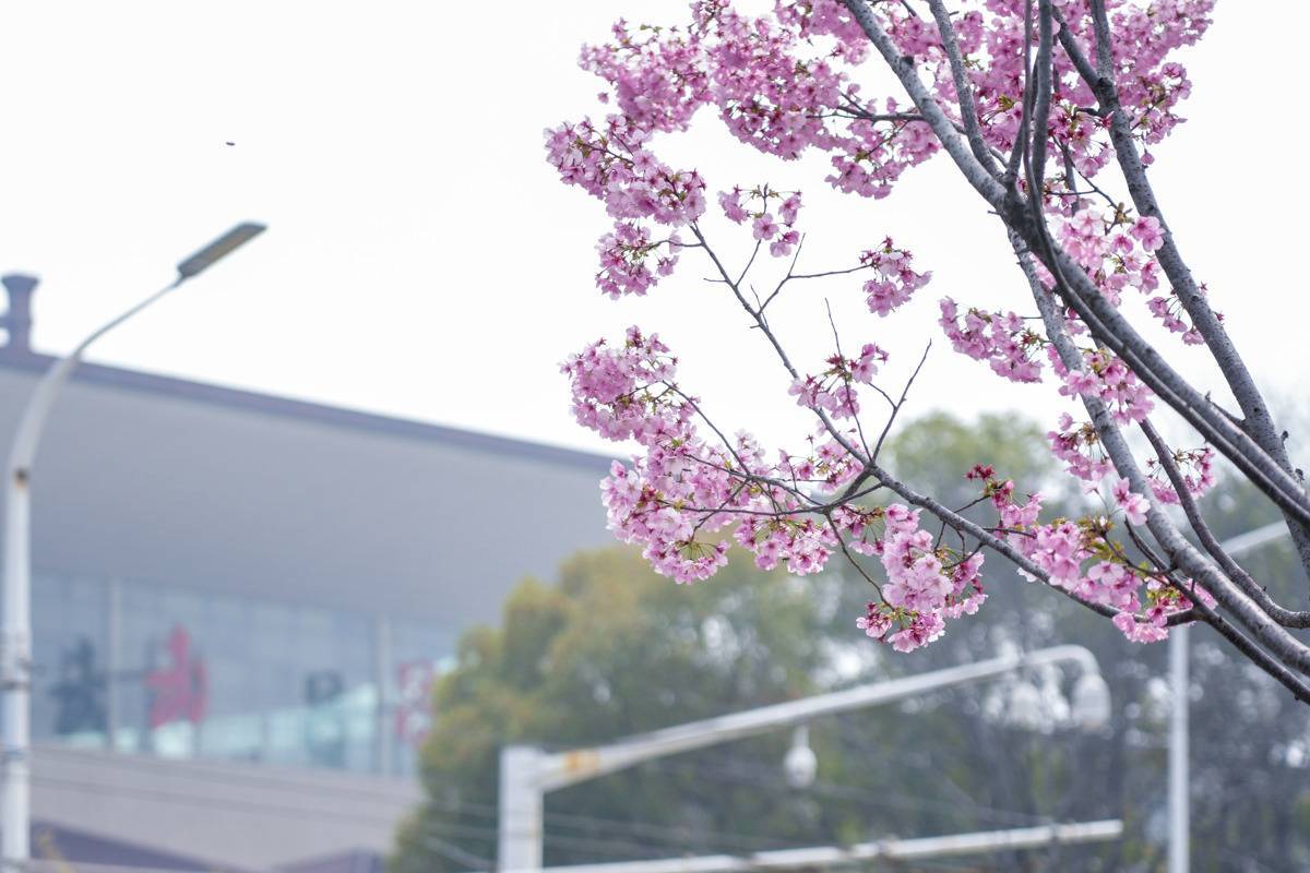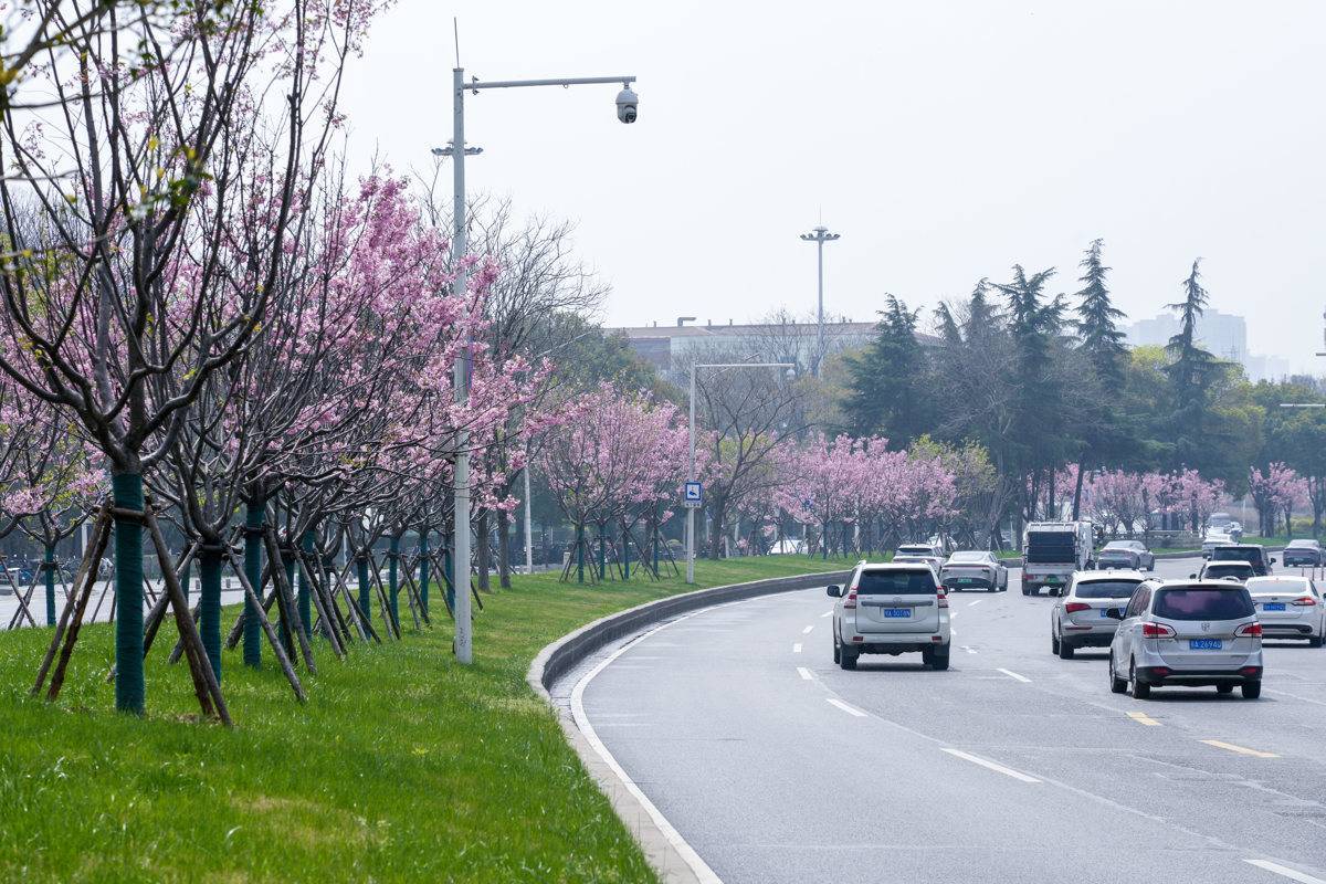 据悉,该区域新栽植阳光樱、染井吉野樱共71株,阳光樱作为中樱代表,粉艳的花瓣先叶绽放,满树繁花如粉色云霞,极具观赏性。同时,搭配景石点缀栽植穗花牡荆、山茶、亮晶女贞等灌木,辅以时令草花与翠绿草坪,形成了层次分明、简洁精致的站前景观,既凸显了樱花的柔美,又彰显了武昌的生态底蕴。