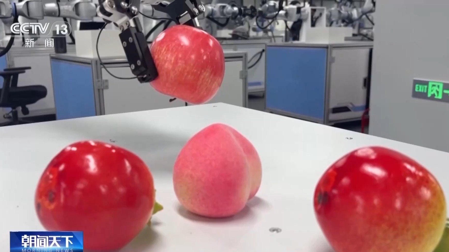 总台记者 付胜斌:在这里众多机器人正在学习如何触摸。当机器人掌握了触摸这项技能之后,它不仅仅是简单的搬运工的角色。也正是因为有了触觉,这个机器人不仅能够看到自己的物品在哪儿,也能感知到自己抓没抓住,拿没拿稳。最终平稳把东西放在桌面之上。