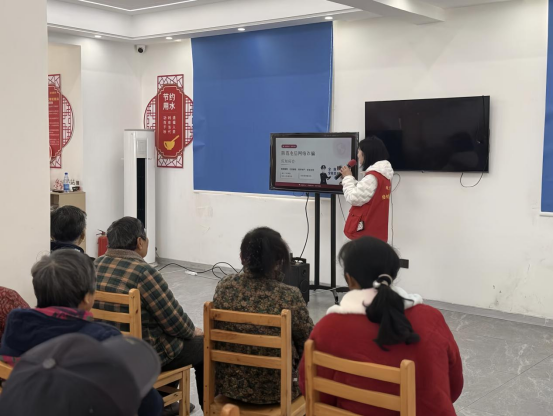 活动现场暖意融融。志愿者们提前抵达布置场地,面对前来参与的老年村民,主动搀扶引路、贴心安排座位,以细致周到的服务,为反诈宣传营造出温馨和谐的氛围。