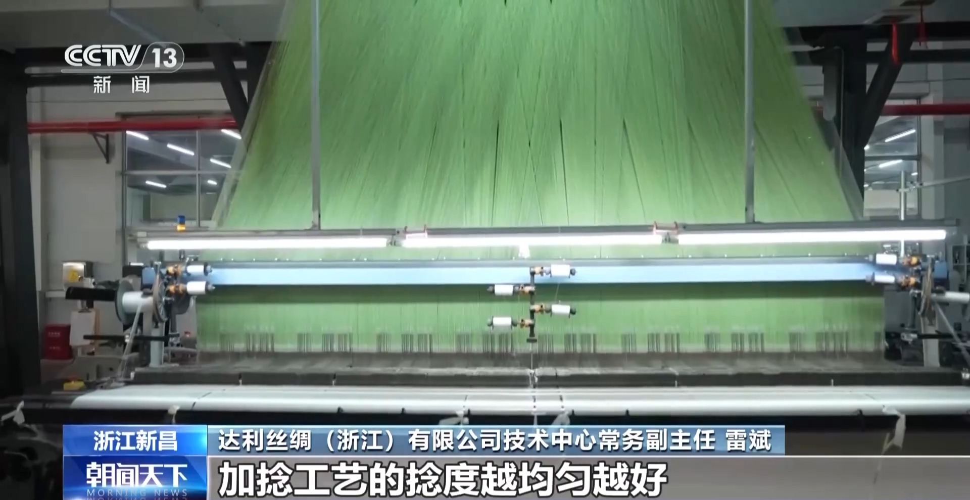达利丝绸(浙江)有限公司技术中心常务副主任 雷斌:最关键的一道工艺是加捻工序,加捻工艺的捻度越均匀越好,相当于回弹效果越好。
