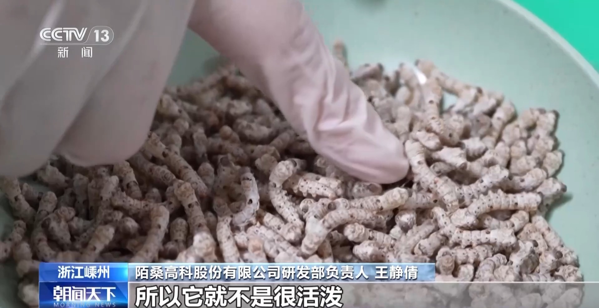 陌桑高科股份有限公司研发部负责人 王静倩:像这个是蜕皮中,它还在休眠状态,所以它不是很活泼。要把这些都分出来,统计大概数据。最理想的状态就是调查的时候,大部分的批次都是在一个生长状态,这样蚕茧的质量可以保证均一。