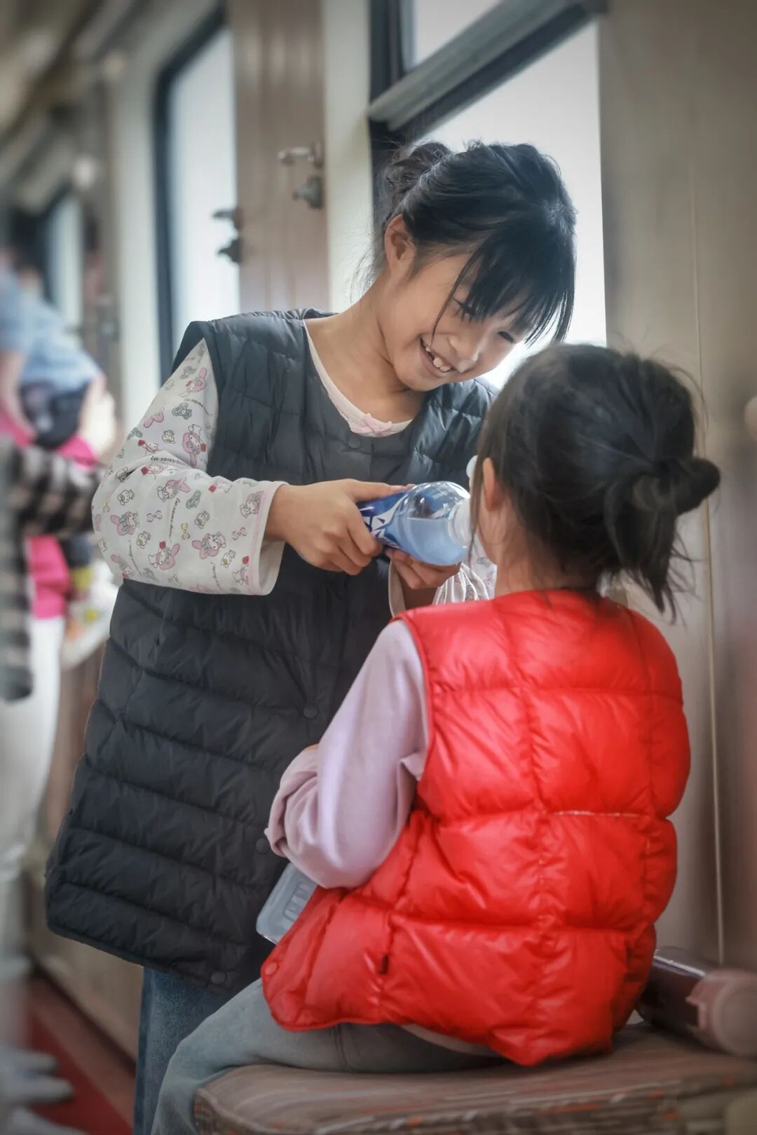 长春至海口的Z384次列车车厢内,定格下一幕动人的手足温情。姐姐俯身浅笑,小心翼翼地喂妹妹喝水,笑容里满是关切与爱意。这趟跨越南北的列车,不仅见证着山河的变换,更承载着平凡旅途中的点滴美好。这份无需言说的姐妹情深,成为铁路风景里柔软的人文印记。