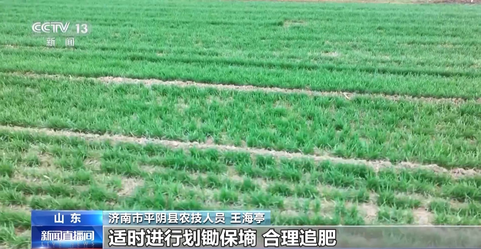 山东省济南市平阴县农技人员 王海亭:针对晚播小麦,要以促弱转壮、增蘖保穗为核心,适时进行划锄保墒、合理追肥,做好倒春寒防范。