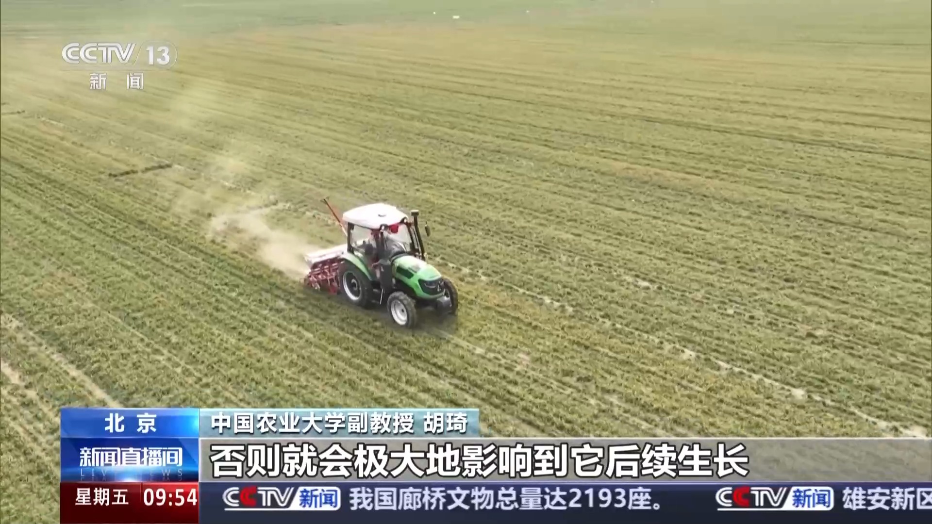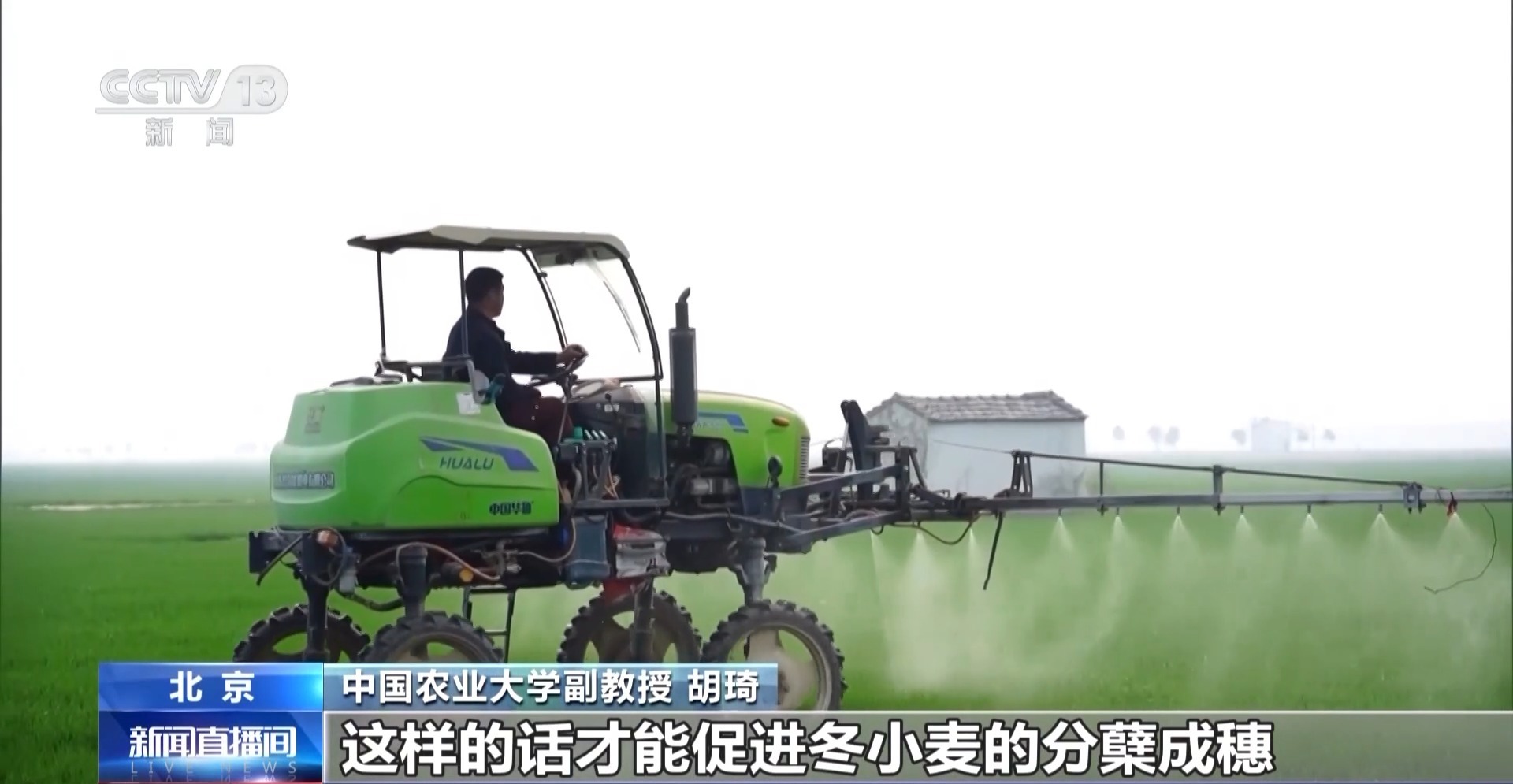 中国农业大学副教授 胡琦:在这个阶段,它对水肥的需求量非常大,需要农民及时浇灌拔节水,追施氮肥,这样才能促进冬小麦的分蘖成穗。否则就会极大影响到它后续的生长,包括影响冬小麦穗粒数的形成,甚至导致千粒重的下降,最终导致产量的降低。所以对于北方冬麦区来说,春分时刻,一刻值千金,并不是一个夸张的说法。