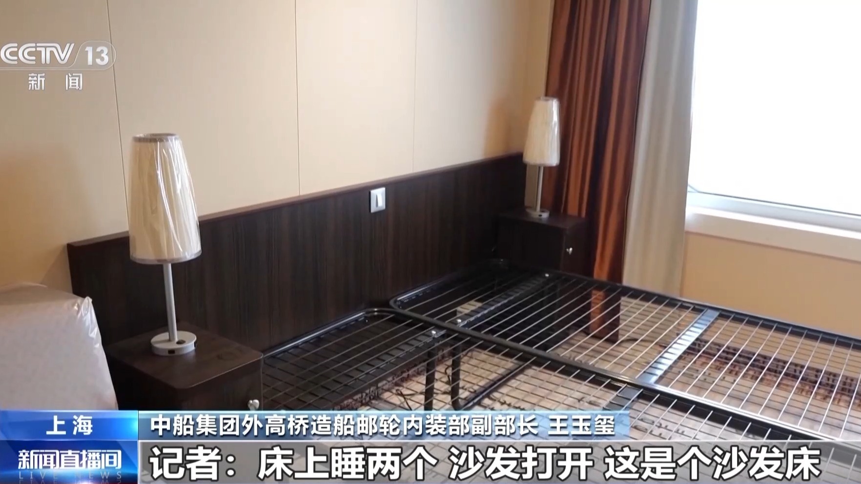 中船集团外高桥造船邮轮内装部副部长 王玉玺:这是标准的阳台房,可以睡四个人。你猜睡在哪里?