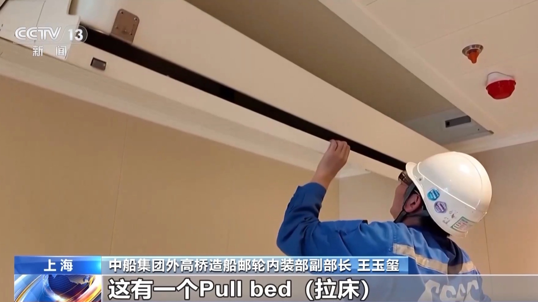 中船集团外高桥造船邮轮内装部副部长 王玉玺:头顶有一个拉床,它可以拉下来。