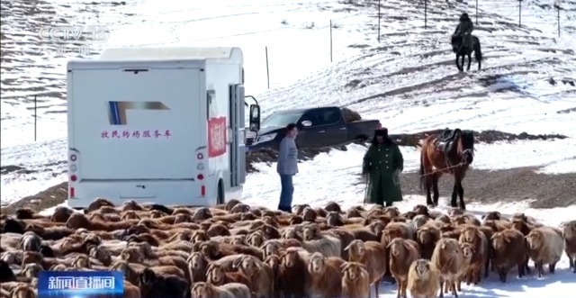 在“流动驿站”停靠点,一辆皮卡车也拉来饲草料,这是当地农业农村局联合牧业服务站组织的“送料上门”服务。这种“流动驿站”虽然空间不大,但优势在于灵活,能随着转场高峰期的推进,被提前停放在牧民最需要补给的路段。