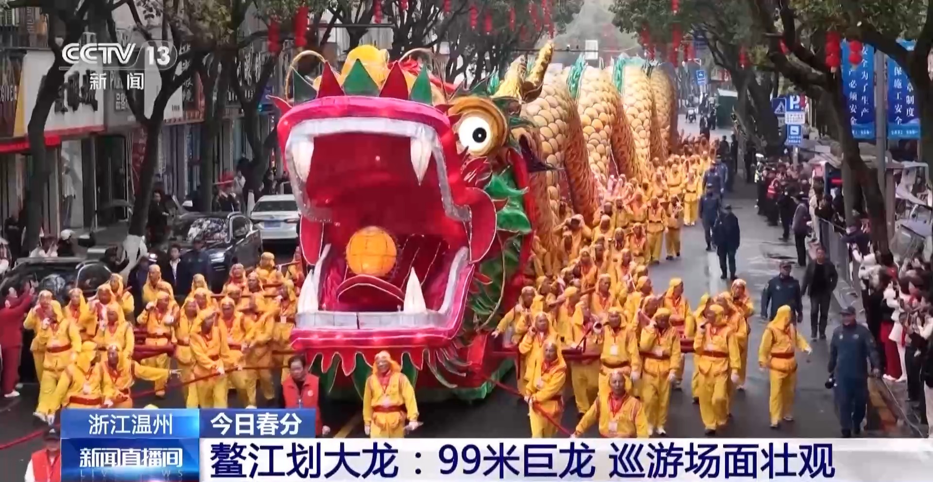总台记者 李若冰:今天是农历二月初二,民间常说二月二“龙抬头”,今年又恰逢春分节气。在平阳,每到这个时候,就会有一项特别的民俗活动,浩浩荡荡的龙巡游队伍缓缓走来,这就是平阳的国家级非遗——鳌江划大龙。