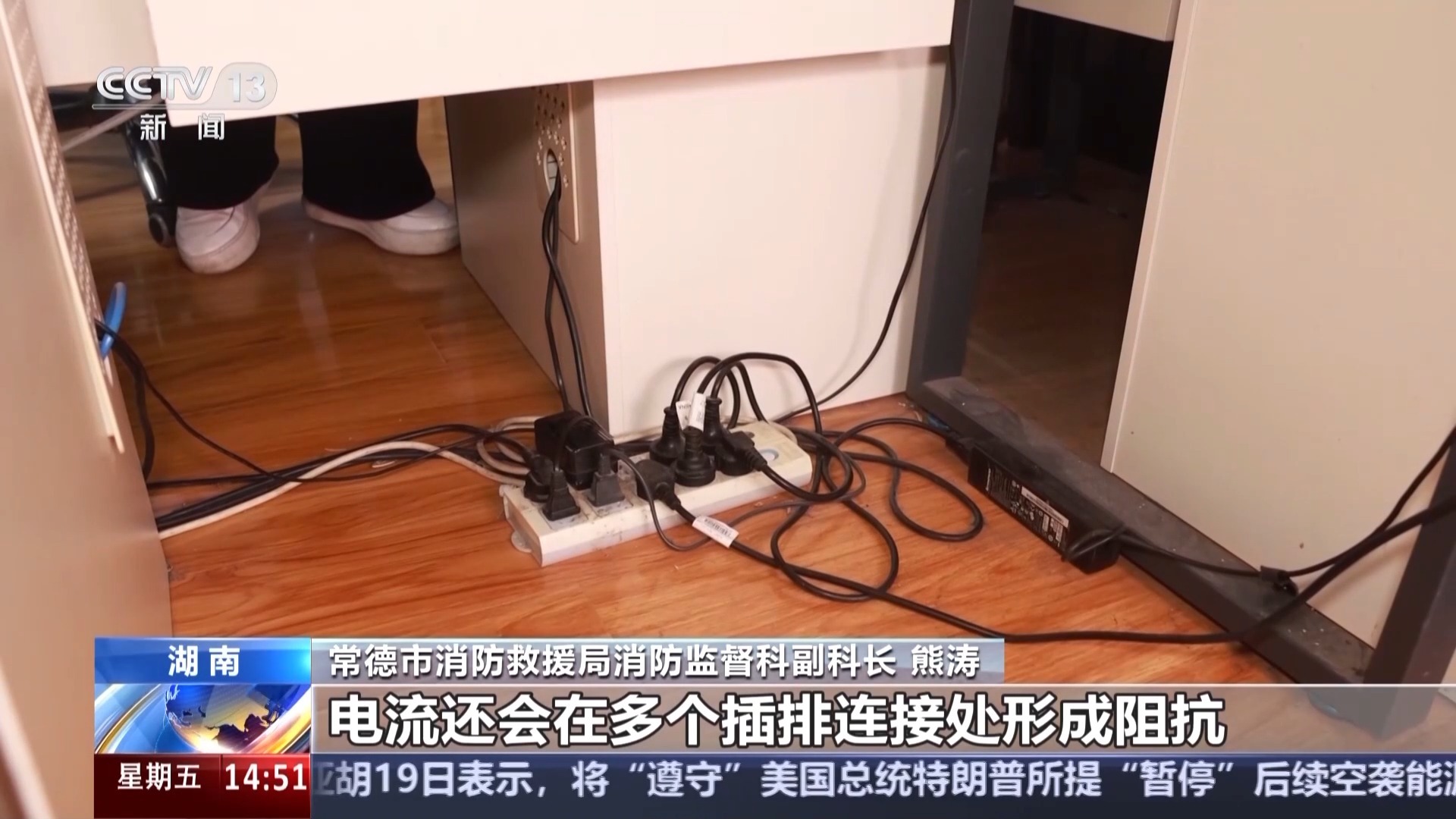 常德市消防救援局消防监督科副科长 熊涛:日常生活中,建议大家定期检查家中的电线是否有老化、破损或者开裂的情况,如有异常应立即更换;手机、充电宝充完电后应及时拔掉,避免长时间过充;外出或睡觉前,要关闭非必要电源,做到人走电断。