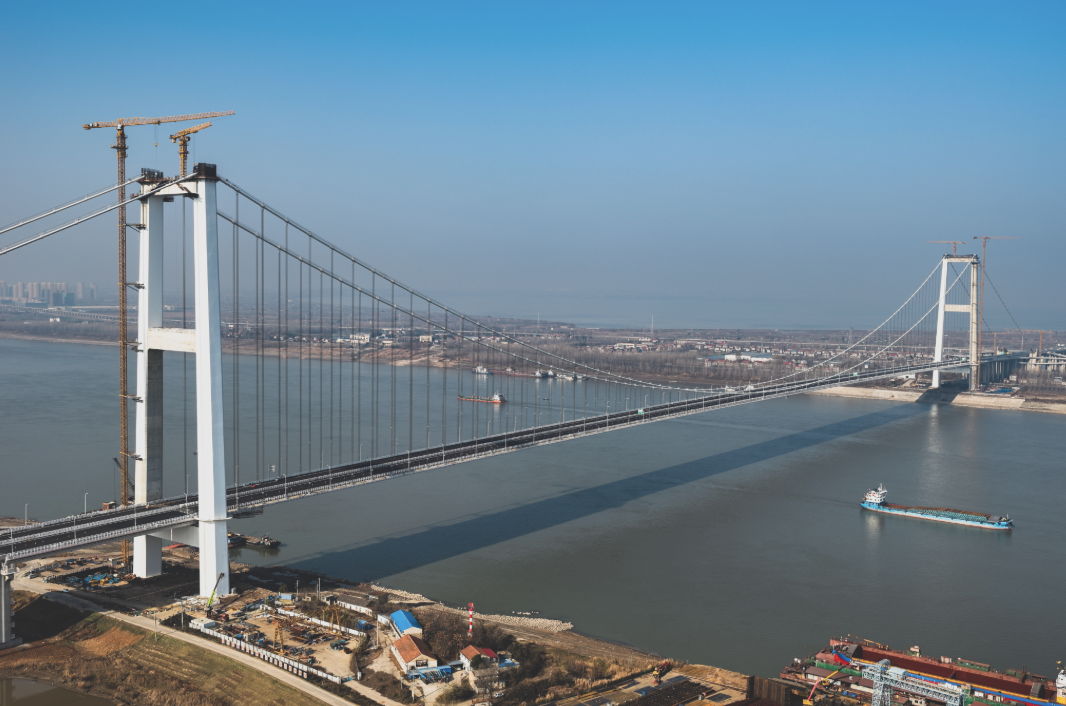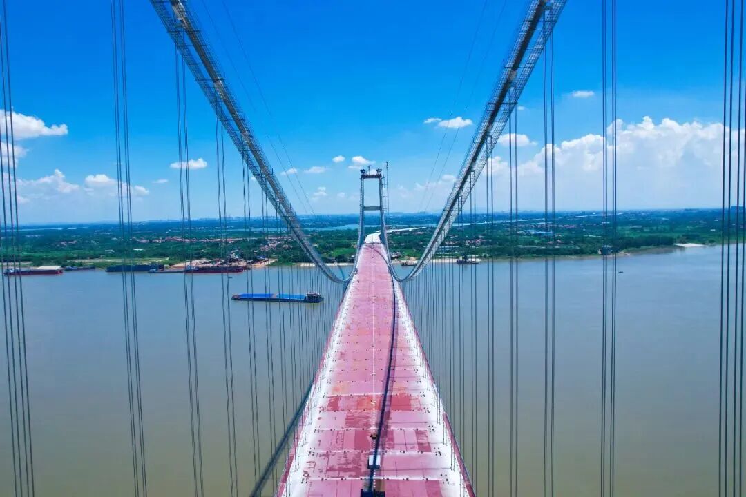 武汉双柳长江大桥是目前长江上桥面最宽的公路悬索桥,建设过程中面临多项技术挑战,建设团队通过技术创新、科研攻关,逐一突破难点,实现多项技术首创。