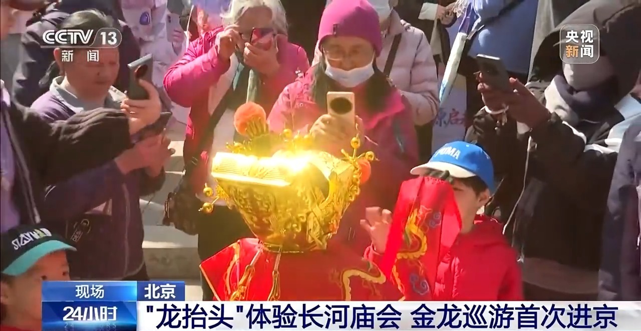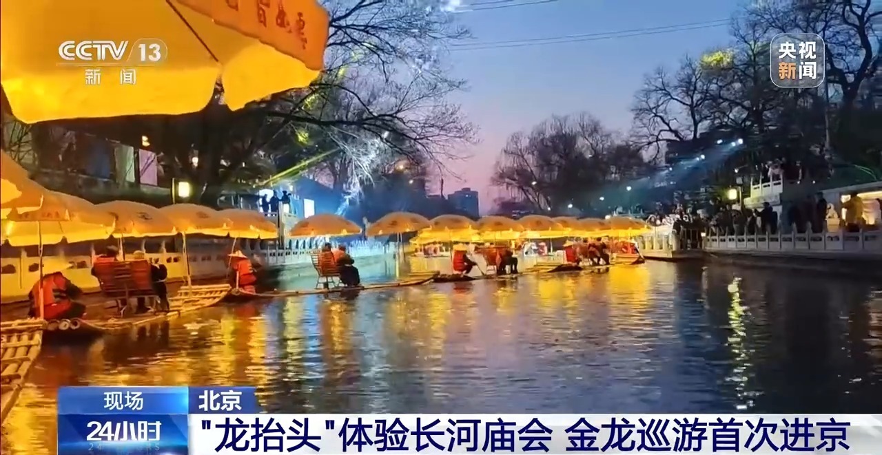 农历二月初二“龙抬头”,北京南长河沿岸举办了长河庙会,庙会活动吸引了大量市民游客参与体验互动,其中来自广西阳朔的金龙巡游首次进京,专程带来了白天+夜晚多场次的精彩演绎。