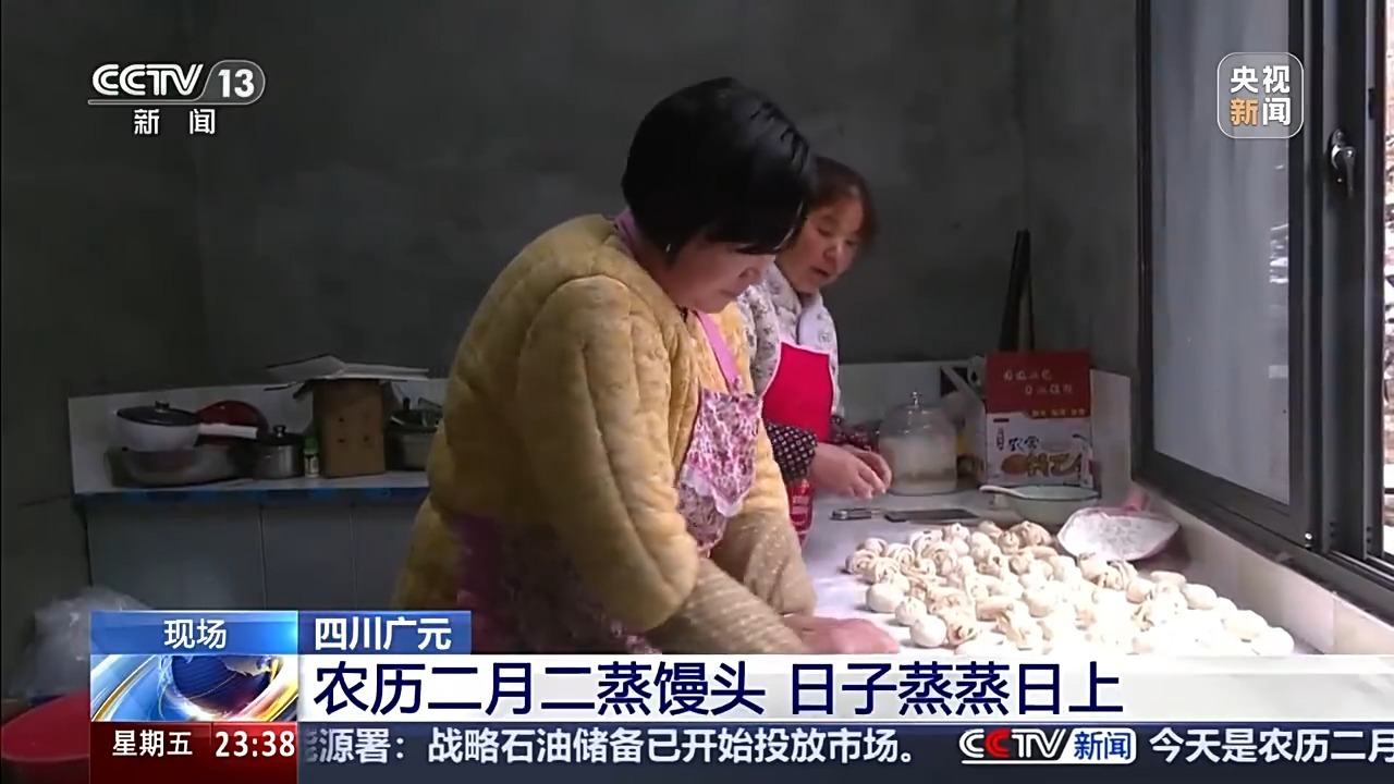 在广元市旺苍县,家家户户有蒸馒头祈福的习俗。当地人用一笼热气腾腾的馒头,祈愿新的一年日子红红火火、蒸蒸日上。一大早村民们就开始忙碌起来。大家挽起衣袖,把提前发好的面团放在案板上,双手反复揉搓、按压,揉好的面团被分成大小均匀的小面团,捏成不同的模样。每一种形状都藏着特别的心意;福袋馒头寓意着福气满满、好运连连,荷包馒头象征着招财进宝、日子富足等等。