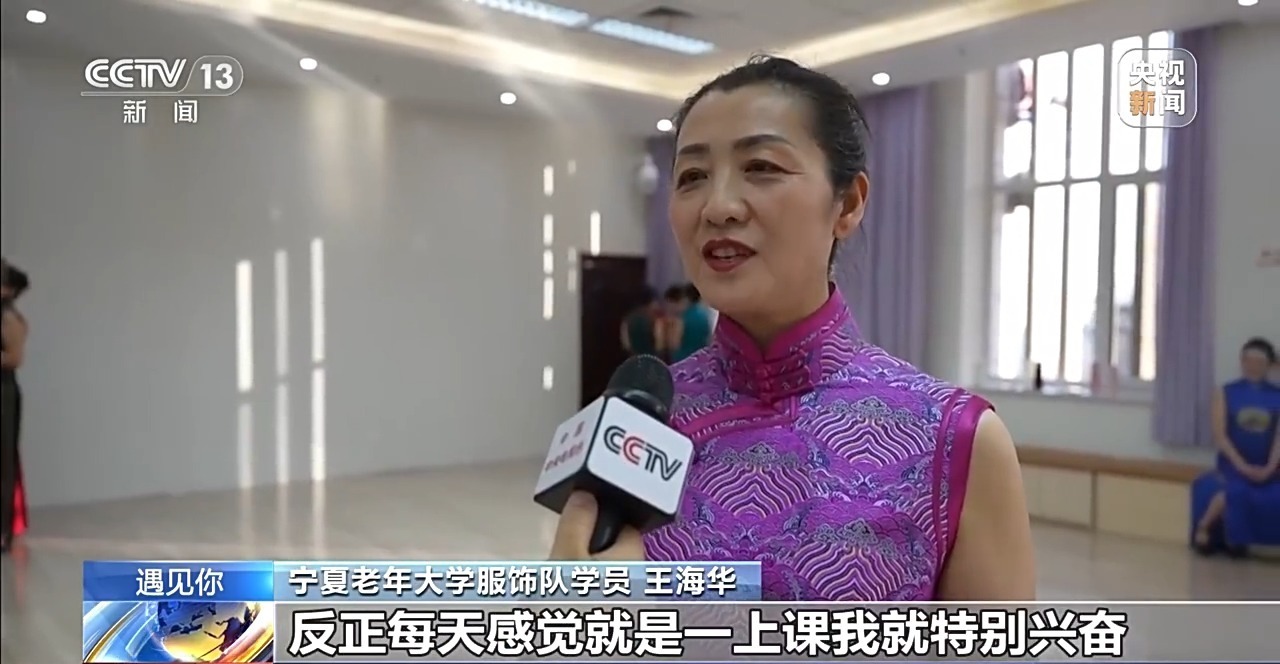 宁夏老年大学服饰队学员 王海华:反正每天感觉就是一上课我就特别兴奋,特别快乐。我们家人都说我现在比以前更精神了。