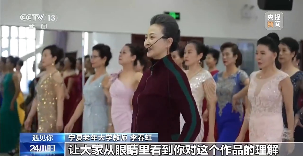 宁夏老年大学教师 李春虹:我们中老年的点在什么地方?因为我们有漫长的人生经历,我们脑子里是有内容的,我们的眼睛里是有内容的,所以我在训练的过程中间,更重要的去刻画,就是更重要的去传授,让大家从眼睛里看到你对这个作品的理解,你对这个服饰的理解,在你的眼神中要展现出不同的东西。