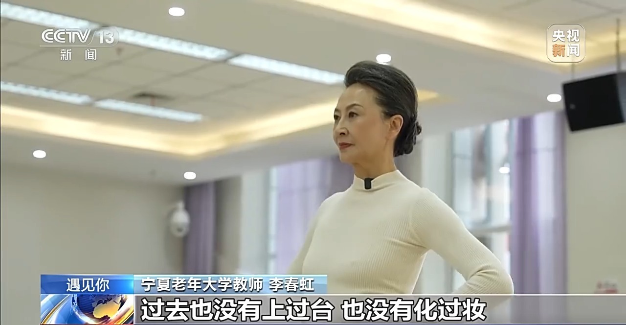 宁夏老年大学教师 李春虹:一开始自己也是摸索,一个小白,过去也没有上过台,也没有化过妆,现在不敢看以前的视频,看了以后就觉得怎么是这样,就是不断地学习,然后走多了,走时间长了,那么当然自己也有一些经验了。