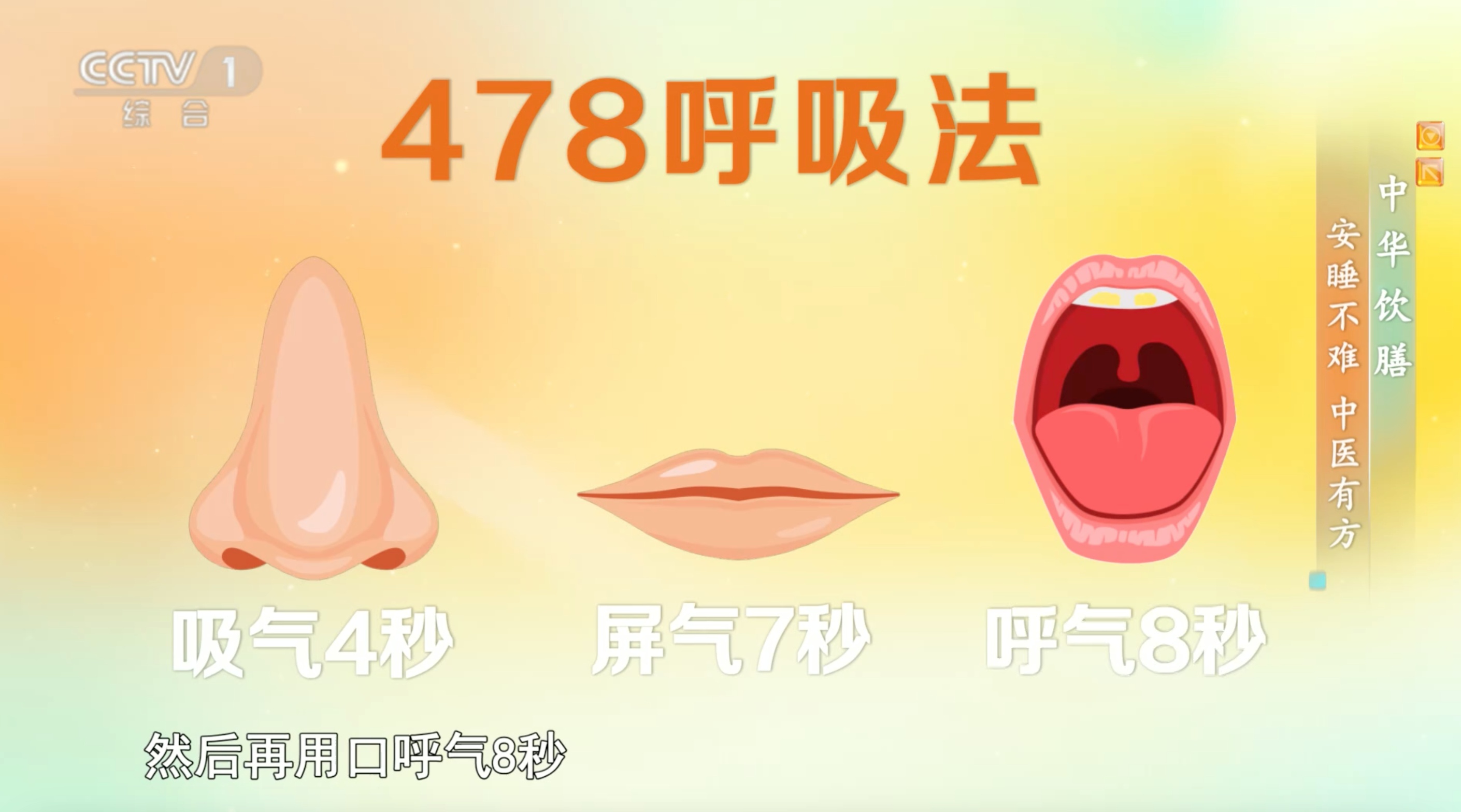 鼻吸气4秒,屏住呼吸7秒,口呼气8秒,循环5~6次,能抑制交感神经过度活跃,让身心放松,助力入睡,安全且有效。
