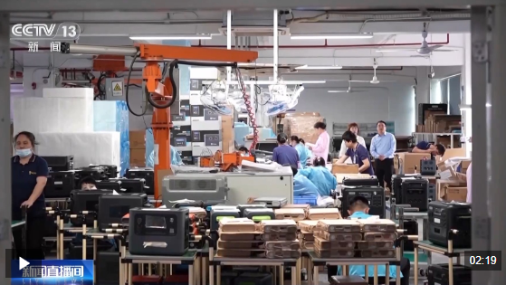 在企业生产车间里,记者看到的是一派繁忙的景象,一台台储能设备正在被组装、装车。这种移动储能设备一般长40厘米、宽20厘米、高20厘米,相当于一台小型打印机的体积。在欧洲和美国普遍被用于家庭的应急备电、户外用电等场景。一台电源能支持90%以上家电设备。