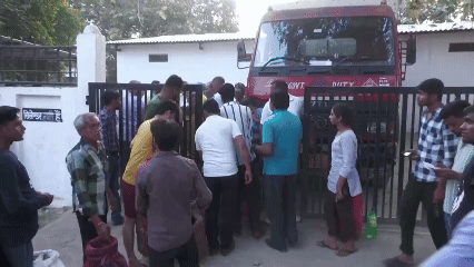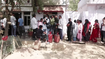 印度民众手持购买凭证排队等待领取液化石油气罐。