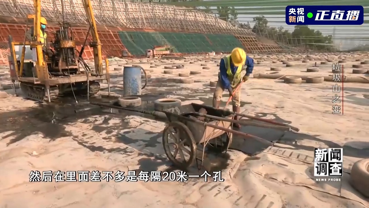 深圳市罗湖区城管和综合执法局党组成员 副局长 叶彬:我们在项目开始的时候请了国内顶尖的院士团队,来对这个填埋场做了目前国内能够看到的最详细的一次堆体调查。一共打了七百多个孔,差不多每隔20米一个孔,进行了钻探。实际上我们在挖开的时候发现,有些填的范围可能是超出了原先图纸的范围,那导致开挖过程当中可能就会随时要进行修正。