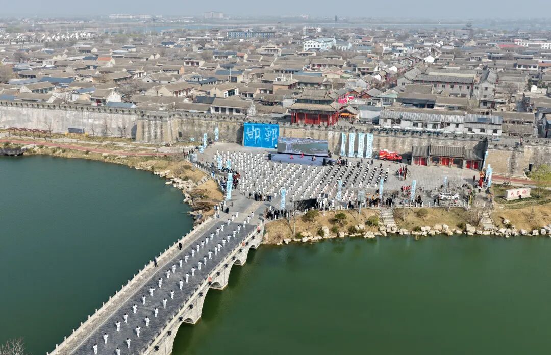 21日,太极拳爱好者在河北省邯郸市永年区广府古城进行太极拳展演(无人机照片)。新华社发(郝群英摄)