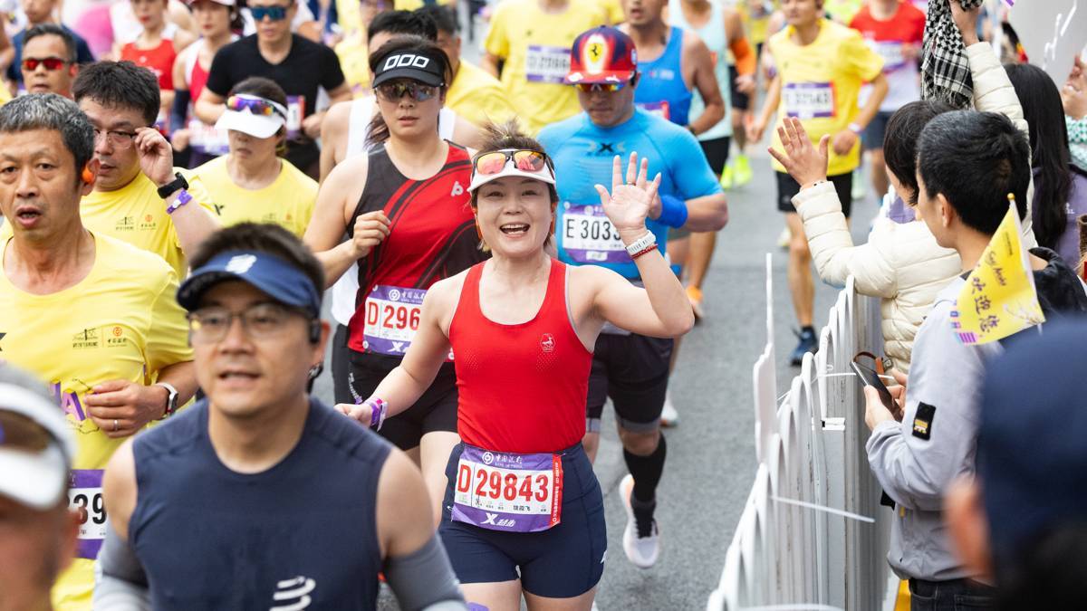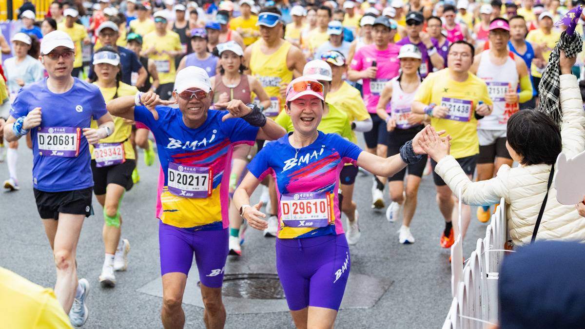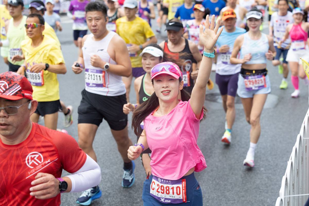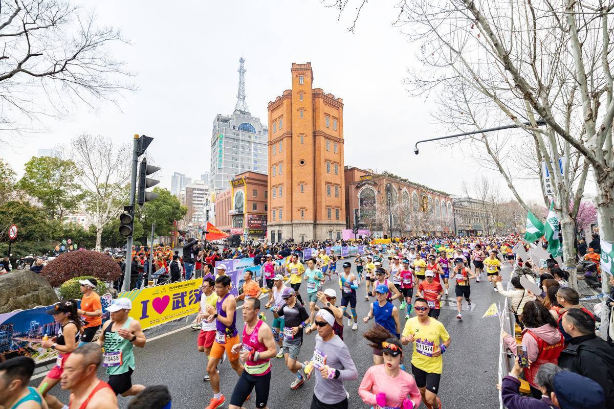 2026年3月22日,2026武汉马拉松鸣枪开跑,图为外国选手跑过武汉汉口百年中山大道上的汉口水塔。(湖北日报全媒记者 何宇欣 摄)