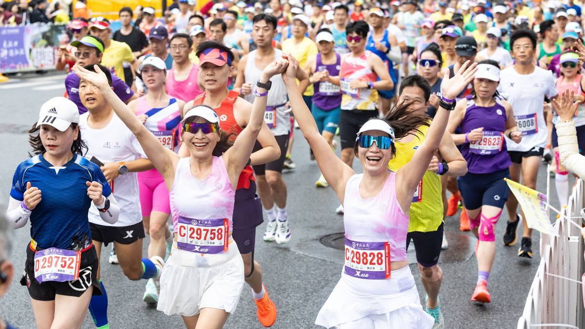 2026年3月22日,2026武汉马拉松鸣枪开跑,选手们满怀激情地跑过武汉汉口百年中山大道上的汉口水塔。(湖北日报全媒记者 何宇欣 摄)