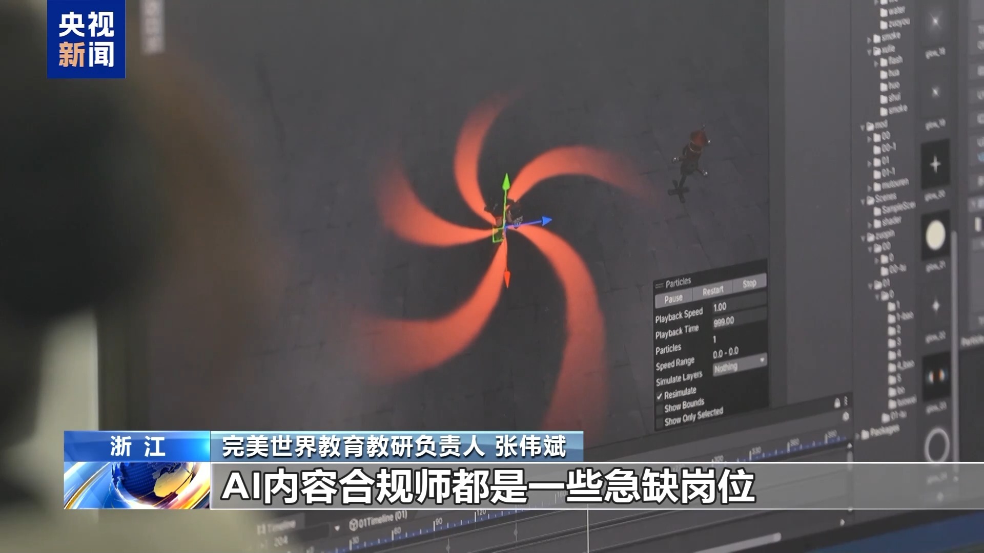 完美世界教育教研负责人 张伟斌:一般学员培训一个多月,就会有全国的动漫、游戏、影视公司过来招人,包括AI数字人开发运营,AI内容合规师都是急缺的岗位。