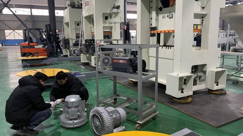 湖北屹鑫包装有限公司,工人们正在安装、调试新设备