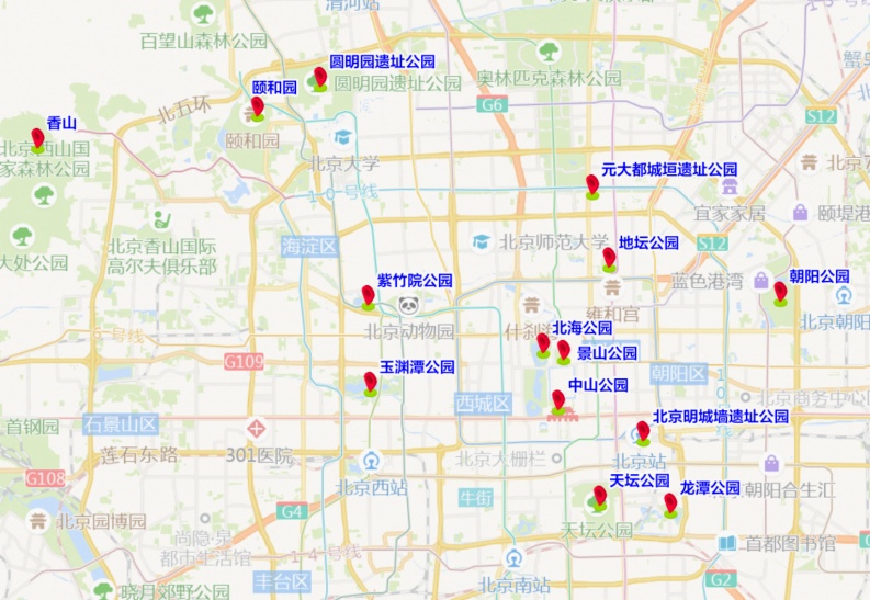 近期天气回暖,部分公园举办赏花游园等主题活动,市民春季出游活动增多,去往香山、景山、北海、圆明园、天坛、中山公园、动物园、龙潭湖、朝阳公园等公园赏花踏青的客流量增加,部分网红景点周边也将出现车流集中的情况。八达岭、环球度假区、故宫、雍和宫、后海—鼓楼—南锣鼓巷地区、首钢园等地标景区热度较高。预计周末期间,香泉环岛、西直门外大街、西三环等公园周边道路车流集中,交通压力较为突出。