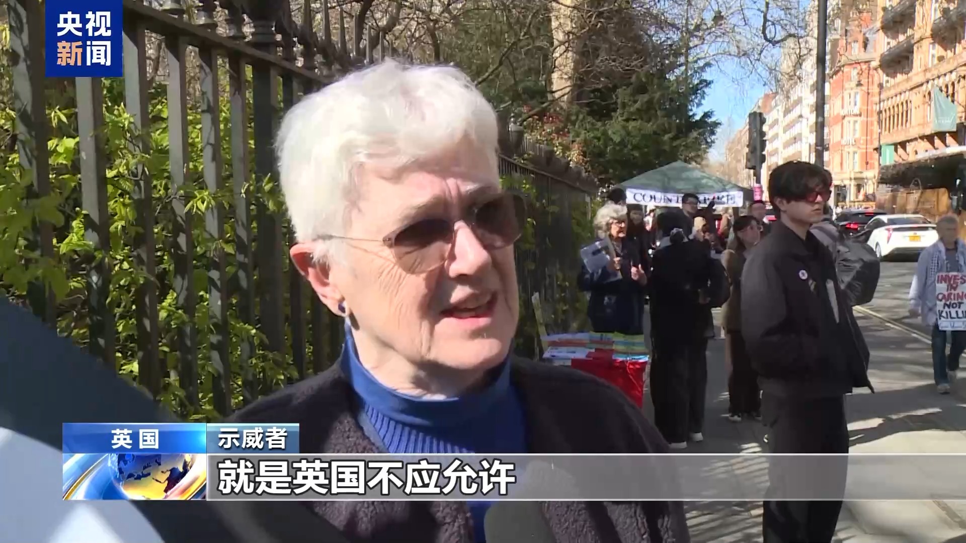 总台记者 杨兢兢:英国当地民众正在伦敦市中心举行集会,抗议美国和以色列对伊朗进行军事行动,表达对中东局势的担忧。不少参与者手持标语,高喊反战口号,呼吁国际社会推动停火与和平谈判。