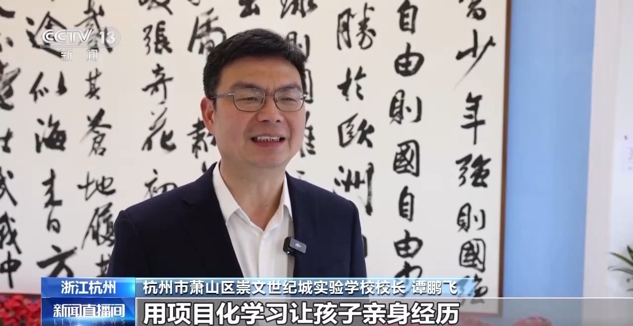 杭州市萧山区崇文世纪城实验学校校长 谭鹏飞:用项目化学习让孩子们亲身经历水资源保护的全过程,另外将AI科技、生态文明教育与学科实践深度融合,让学生在真实探究中树立节水意识。