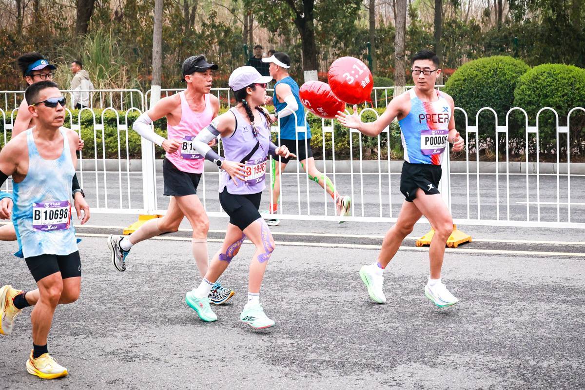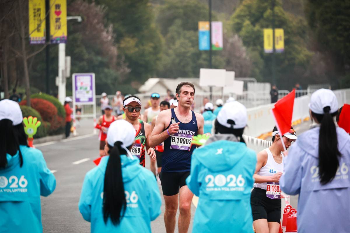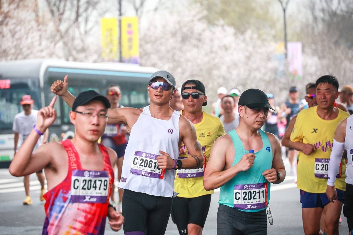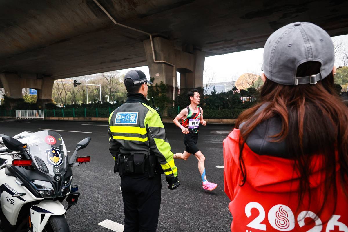 3月22日,2026武汉马拉松开跑,何杰等全马跑者首次体验东湖白马道,并跑过曾经的全马终点欢乐谷。(湖北日报全媒记者 时龚 摄)