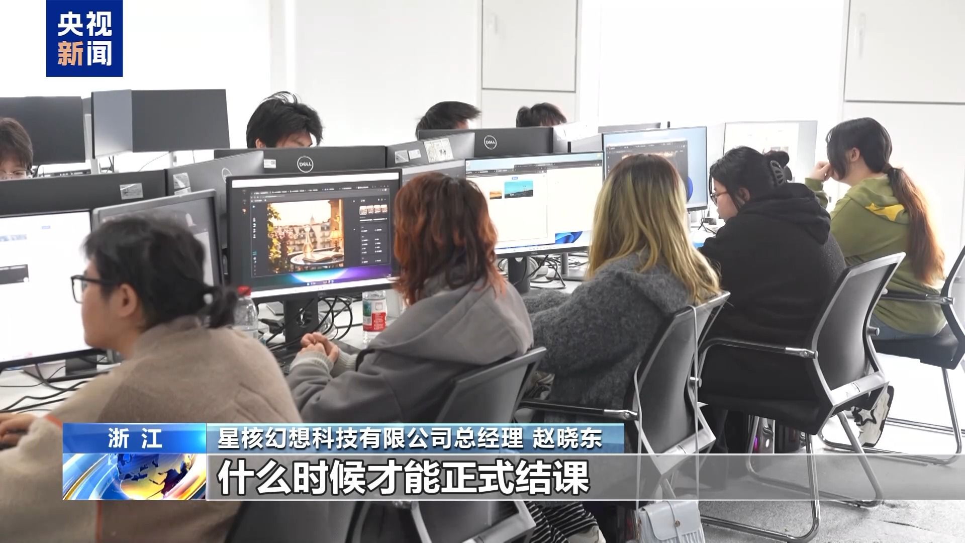 完美世界教育教研负责人 张伟斌:一般学员培训一个多月,就会有全国的动漫、游戏、影视公司过来招人,包括AI数字人开发运营,AI内容合规师都是急缺的岗位。