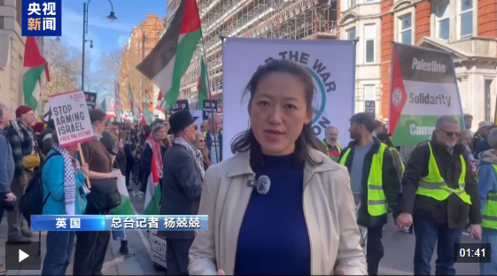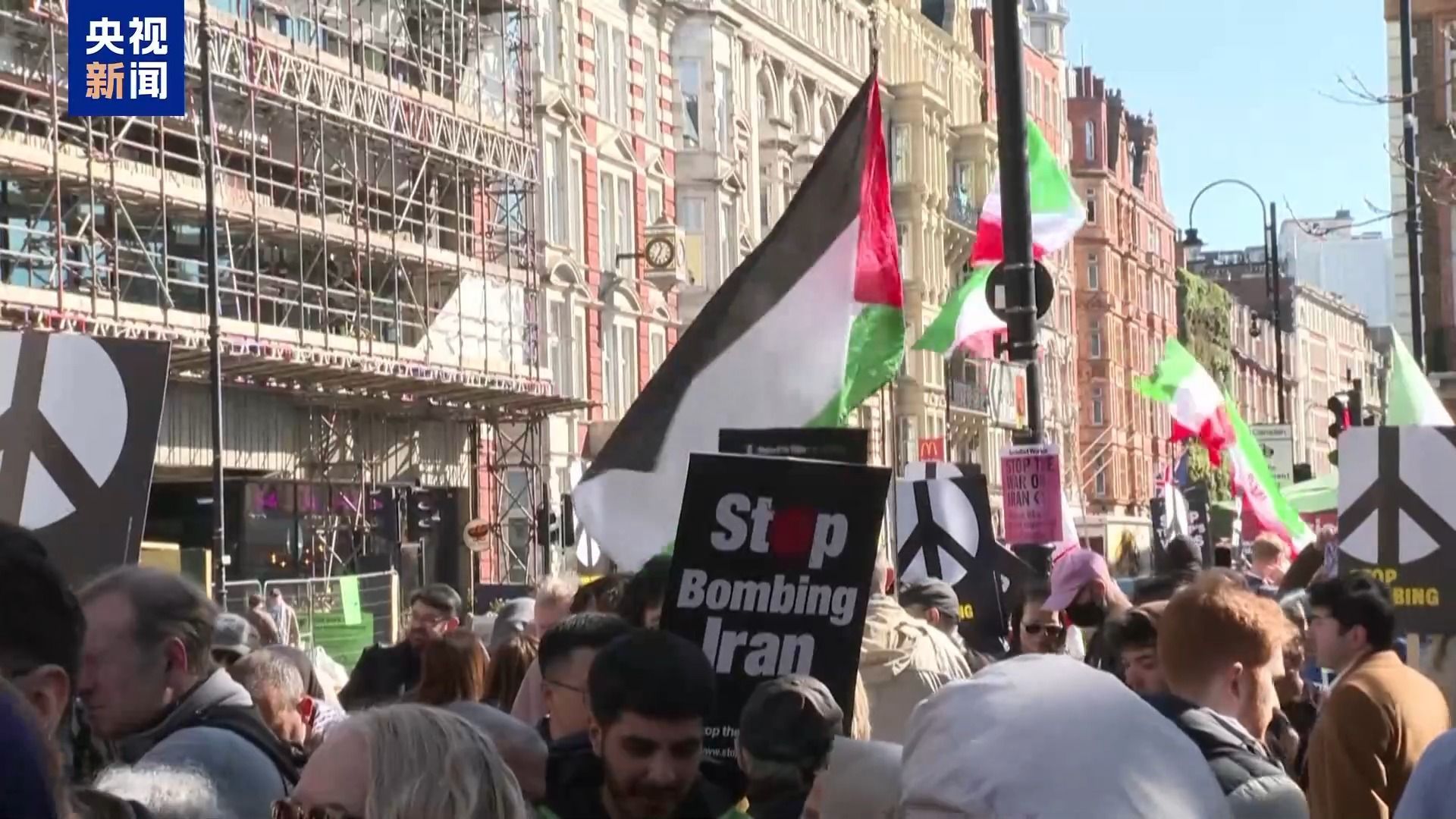 总台记者 杨兢兢:英国当地民众正在伦敦市中心举行集会,抗议美国和以色列对伊朗进行军事行动,表达对中东局势的担忧。不少参与者手持标语,高喊反战口号,呼吁国际社会推动停火与和平谈判。